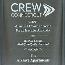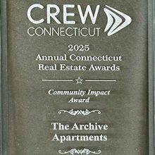 In 2025, The Archive Apartments in New Haven received two awards from CREW-CT at the 30th Annual Blue Ribbon Real Estate Awards: Best in Class Multifamily/Residential and Community Impact.